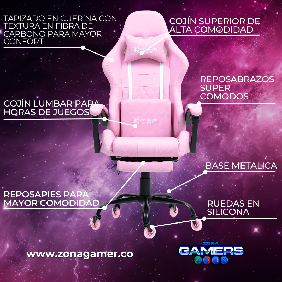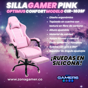 Silla Gamer CIR-1039F Pink con reposapiés y ruedas en silicona